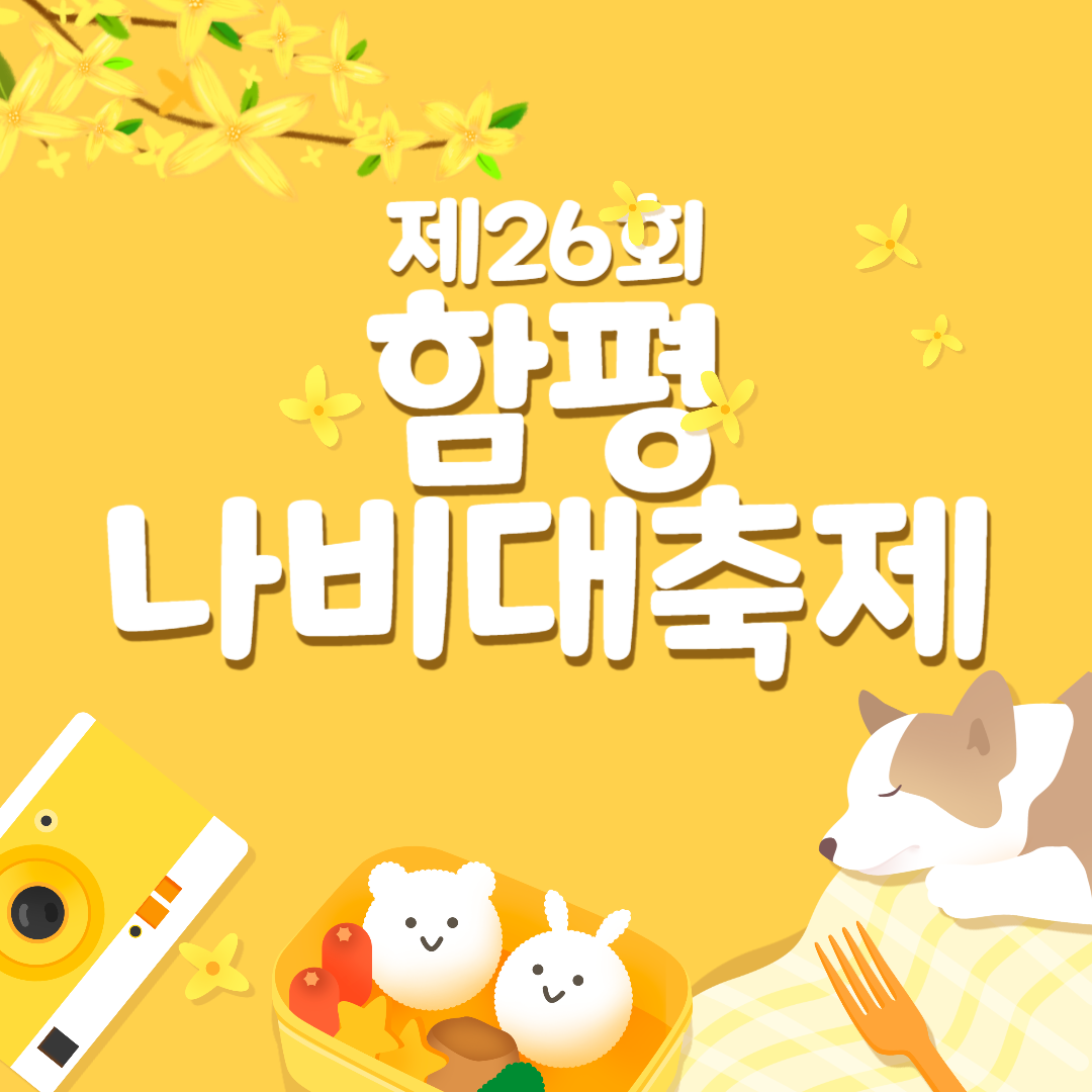 전라남도 함평주민분들께 즐거운 소식이 있습니다. 초청공연(지원이, 박지현, 홀리뱅, 케이시, 코요태, YB밴드, 육중완밴드, 박서진), 버스킹, 마술, 버블쇼, 퍼레이드, 다양한 체험, 먹거리 등 가족 연인과 좋은 추억을 쌓을 수 있는 제26회 함평나비대축제에 방문해 보는 것은 어떨까요.