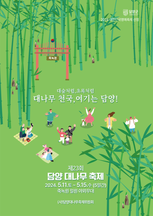2024년 담양 대나무 축제가 열립니다. 초청공연, 다양한 체험, 먹거리, EDM페스타, 불꽃 공연, 버스킹 등 가족 연인과 즐거운 시간을 보내실 수 있습니다. 출연 가수, MC, 주요 일정은 아래 첨부파일을 확인해 주세요.