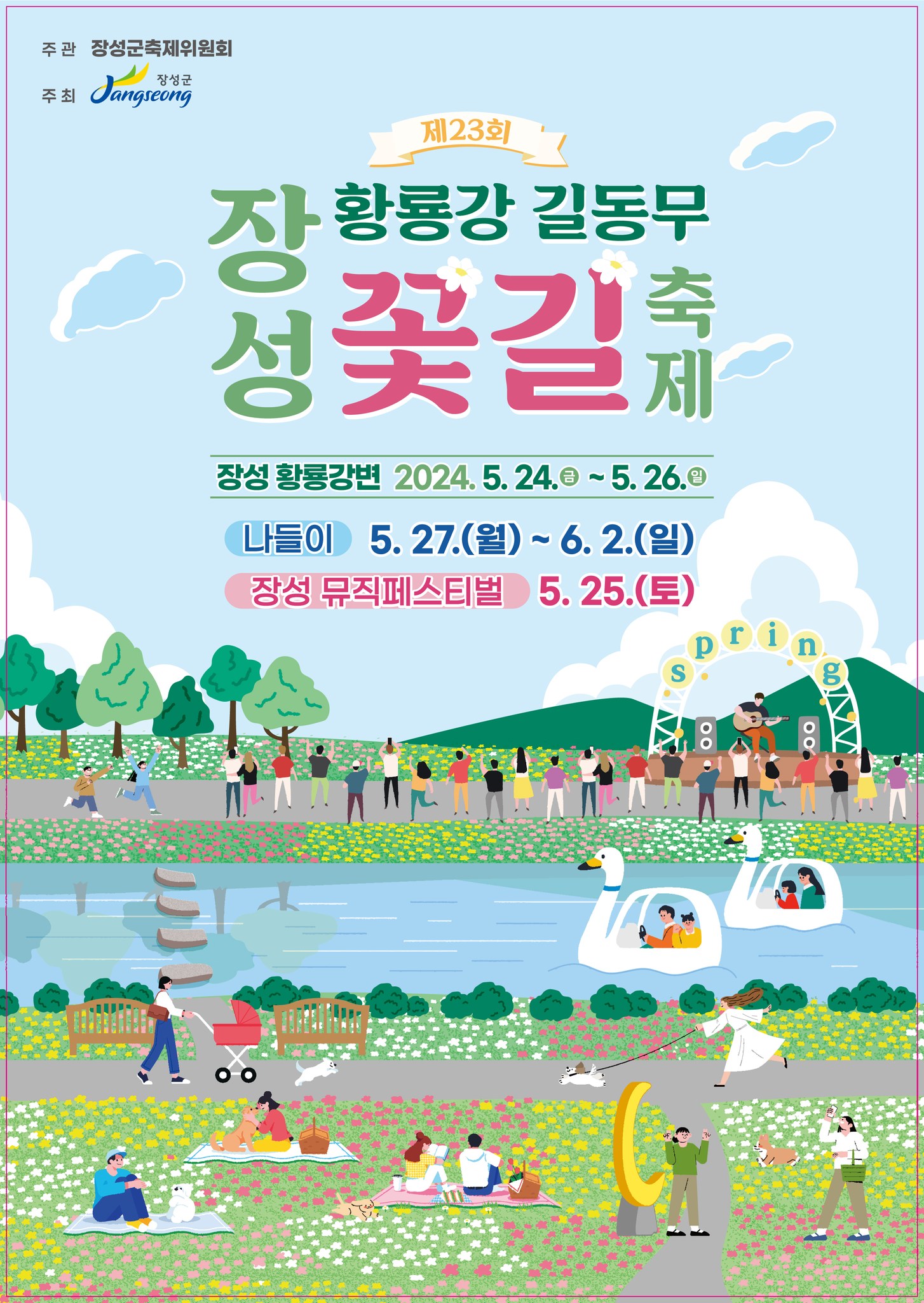 2024년 장성 황룡강 홍길동무 꽃길 축제가 열립니다. 초청공연, 다양한 체험, 먹거리, 포토존, 버스킹 등 가족 연인과 즐거운 시간을 보내실 수 있습니다. 주요 일정 및 홍보영상으로 확인해 주세요.