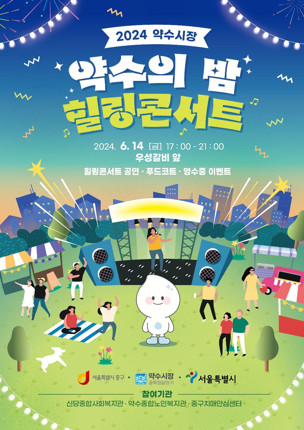언제나 든든한 내편 중구에서 신나게 즐기고 맛보고 싶은 대로 약수의 밤, 힐링콘서트가 열립니다. 힐링콘서트, 이벤트존, 다양한 체험, 먹거리 등 가족연인과 즐거운 시간을 보내세요.