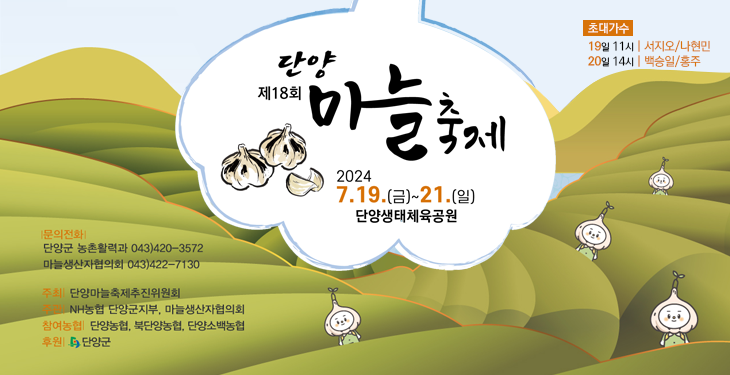 역사와 문화를 다양하게 즐길 수 있는 단양마늘축제가 열립니다. 초청공연, 다양한 체험, 포토존, 먹거리 등 가족연인과 즐거운 시간을 보내세요.